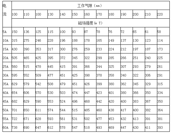 2.4、最大磁場:工作氣隙100mm時,H≥0.7T