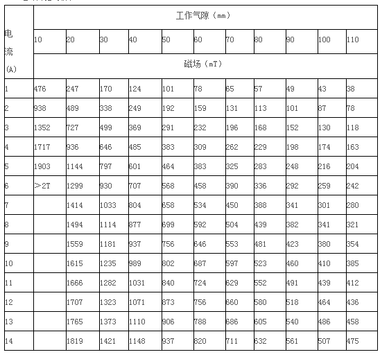 3.4 最大磁場(chǎng):H≥2T, 工作氣隙10mm時(shí),