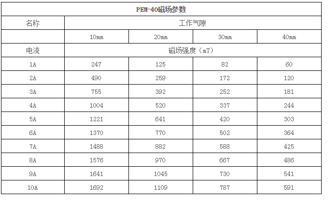 | PEM-40磁場參數(shù) | ||||